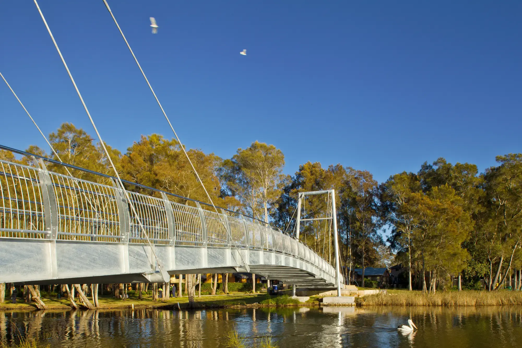 Delivered for Hornsby Shire Council under the NSW Public Spaces Legacy Program, the Pyes Creek Swing Bridge connects Cherrybrook with Fallon Drive Reserve in Dural via a low-profile, 50-metre span through a sensitive ecological corridor.