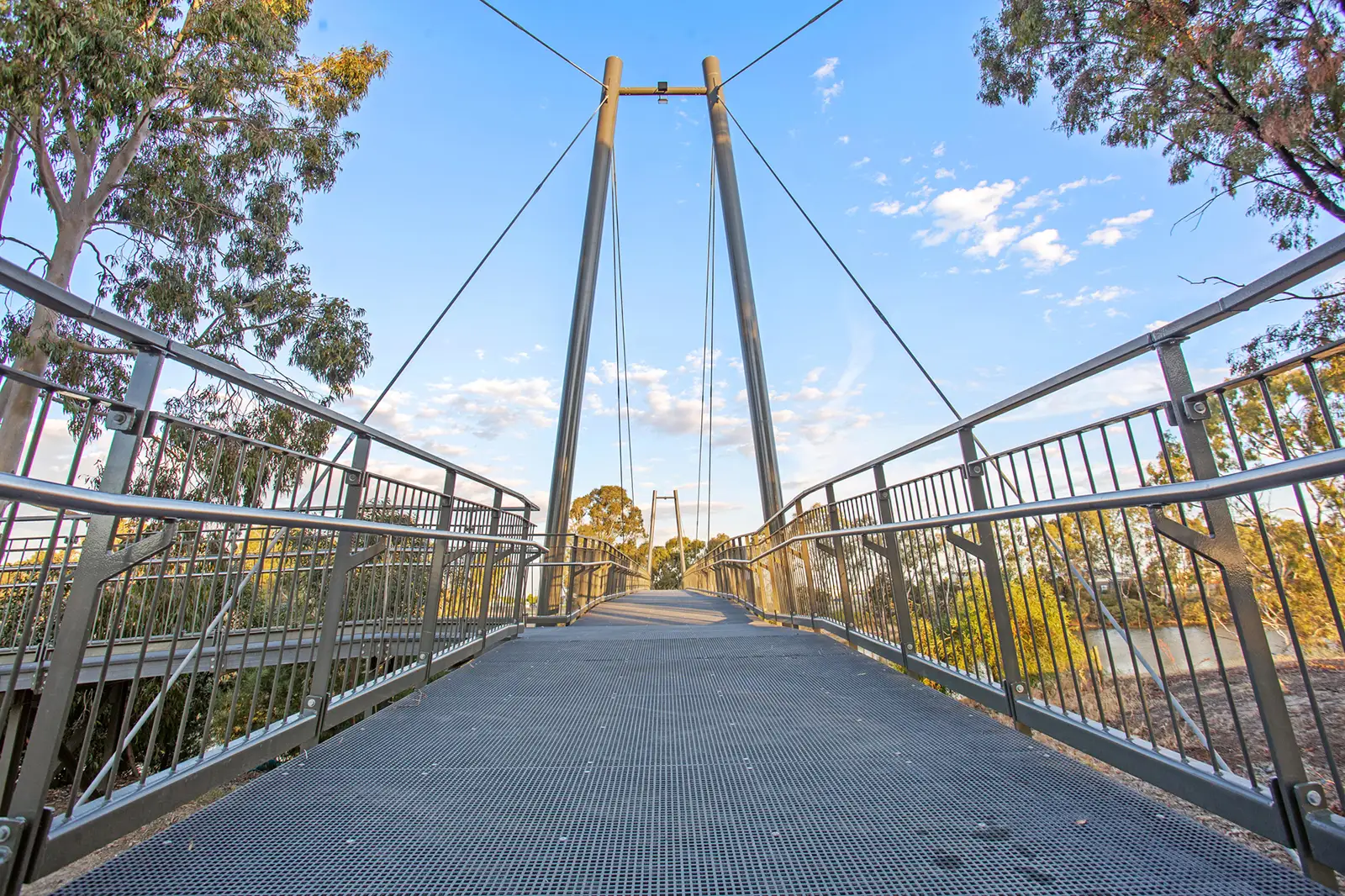 Stretching 73 metres across the Wimmera River – and 15 metres above it – this mighty pedestrian access structure in Horsham is the longest single-span bridge FORGE has ever delivered.