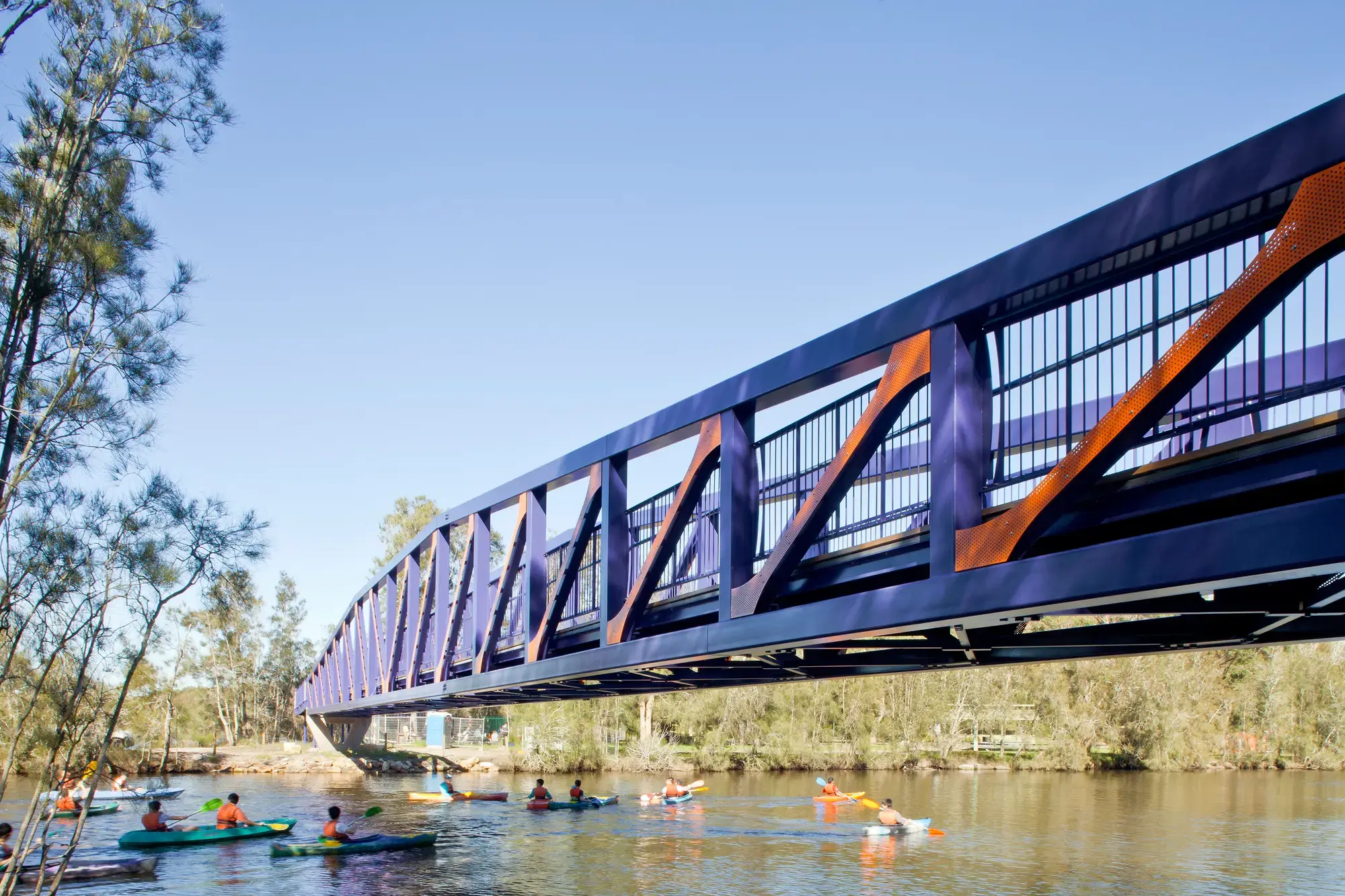 Jim Somerville Bridge, NarrabeenFORGE was contracted by Northern Beaches Council to deliver two major pedestrian bridges at Narrabeen Lagoon—the largest coastal lagoon in Sydney. A highly complex project due to both the size and location of the new bridges, it was essential to design and install the structures in a way that ensured minimal disruption to the fragile riparian zone, while also meeting strict project budgets and timelines .