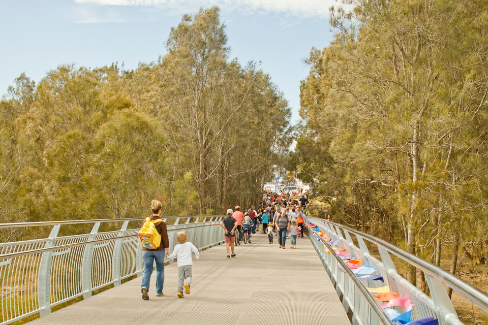 Saltwater Creek on the shores of Tuggerah Lake is one of the Central Coast’s favourite tourist spots. A sensitive mangrove habitat, the creek was also a natural obstacle on the busy walking track that connects Killarney Vale and Long Jetty, making an ecologically responsible pedestrian/cyclist bridge a much-needed piece of infrastructure for the Central Coast Council.