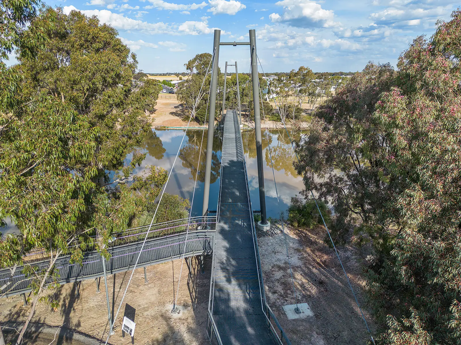 Hamilton Street Pedestrian BridgeStretching 73 metres across the Wimmera River in Horsham, this mighty cable-stayed pedestrian bridge is the longest single-span bridge FORGE has ever delivered. Creating a crucial link to the town centre for more than 2,000 residents and four schools, FORGE was appointed as lead contractor following a multi-million-dollar tender for Horsham Rural City Council.
