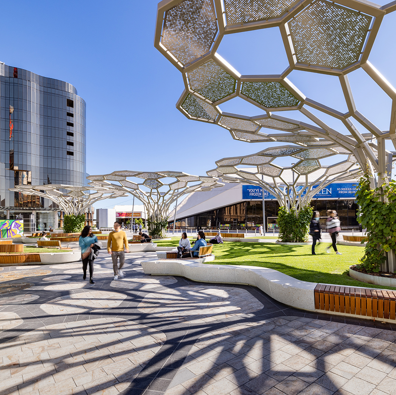 Adelaide Festival Plaza ArboursFORGE was appointed by Walker Corporation following a competitive design tender. The brief was to develop and construct an enchanting series of 16 large-scale public arbours as part of the multi-million-dollar redevelopment of Adelaide Festival Plaza.